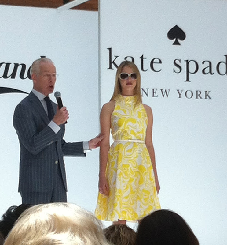 Saturday he was giving commentary on a fashion show that featured Kate Spade, Juicy Couture and Lucky brand clothes. After, he held a question and answer session. I really enjoyed the fashion show. The Kate Spade outfits were adorable and totally embracing that color-blocking trend. This brand is all about fun with kitschy items like purses made of astro-turf, tennis ball shaped purses and a wicker handbag in the shape of an armadillo! Fun. There are also some gorgeous wearable pieces and dresses that will be classics and are worth the investment. They also had Juicy, a luxury resort brand and Lucky Brand which is very California and boho.